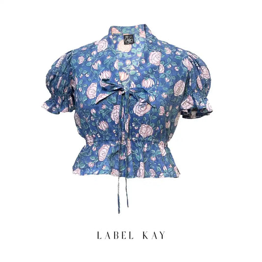 Blue Frill detailed cotton blouse