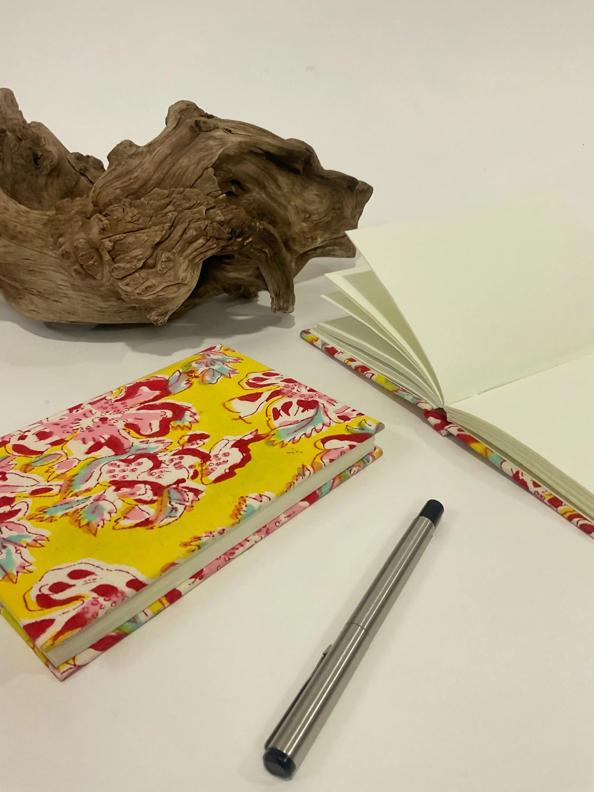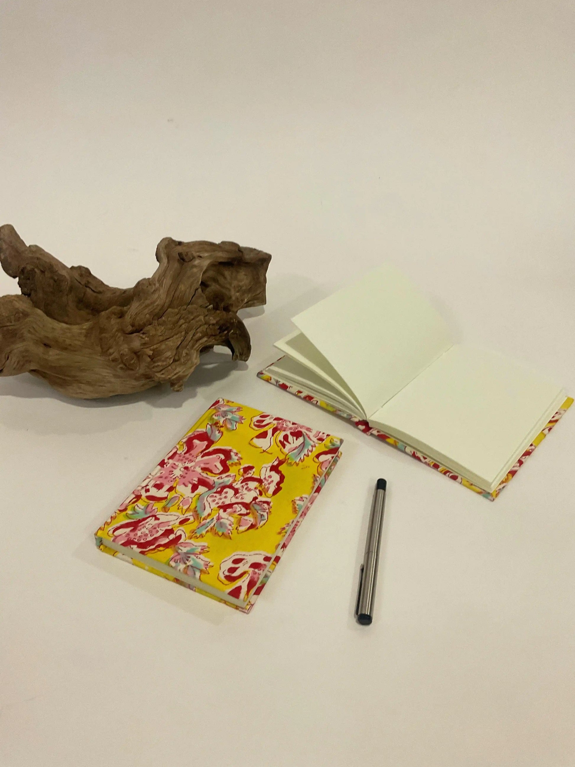 Newest line of upcycled diaries, made from discarded dress fabrics that have been given a second chance! These diaries are not only fashionable and one-of-a-kind but also environmentally sustainable because they are constructed from gorgeous, hand-block printed fabric.It is the ideal companion for your notes and thoughts because it is comprised of handmade paper pages that have been skillfully designed to provide a pleasant writing surface.